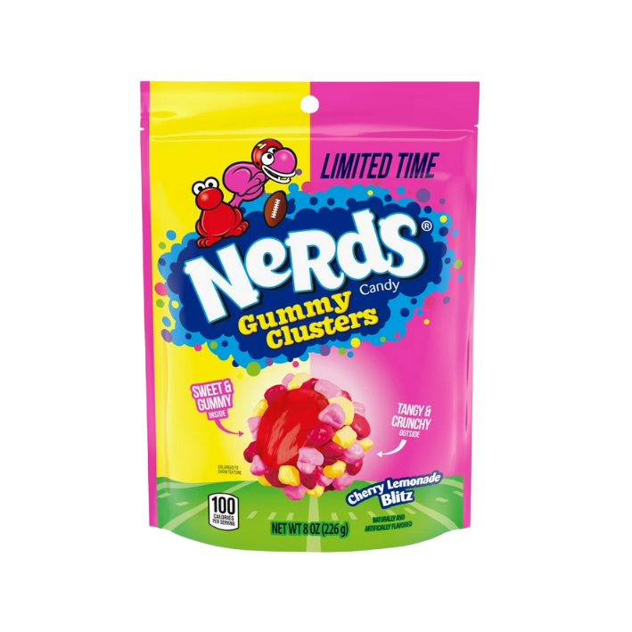 Bring home the joy and treat yourself or a loved one to the perfect combination of tangy and sweet. Grab your bag of Nerds Gummy Cluster Cherry Lemonade 226g today and experience the fun!