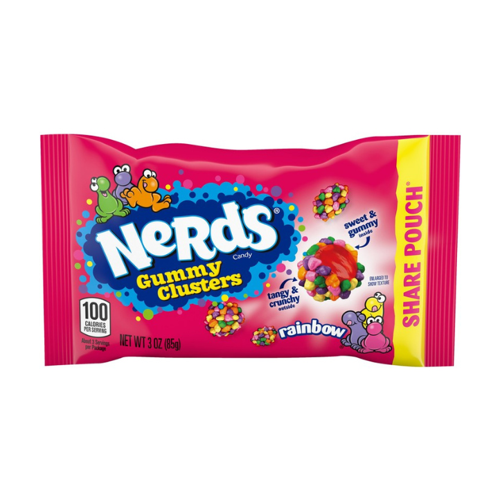 Nerds Gummy Clusters offer the best of both worlds: the playful, fruity crunch of Nerds and the soft texture of a gummy core. Each candy piece in this pouch delivers a harmony of tangy and sweet notes. Whether you have a preference for bold fruity flavors or unique candy combinations, this share pouch has something to delight every taste. Perfect for movie nights, road trips, or simply indulging during a snack break, it’s a choice that suits all occasions.