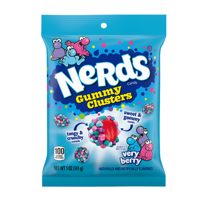 Indulge your tastebuds in a unique candy experience with the Nerds Gummy Cluster Very Berry Bag 141g. Perfectly sized for snacking, this delightful treat combines the berry-tastic sweetness of crunchy Nerds clusters with a soft, chewy gummy center. The harmonious blend of textures and flavors delivers a candy experience that is irresistibly fun and makes every bite an adventure. Whether you crave a punch of fruitiness or love that satisfying crunch, this is the go-to choice for sweet enthusiasts of all ages.